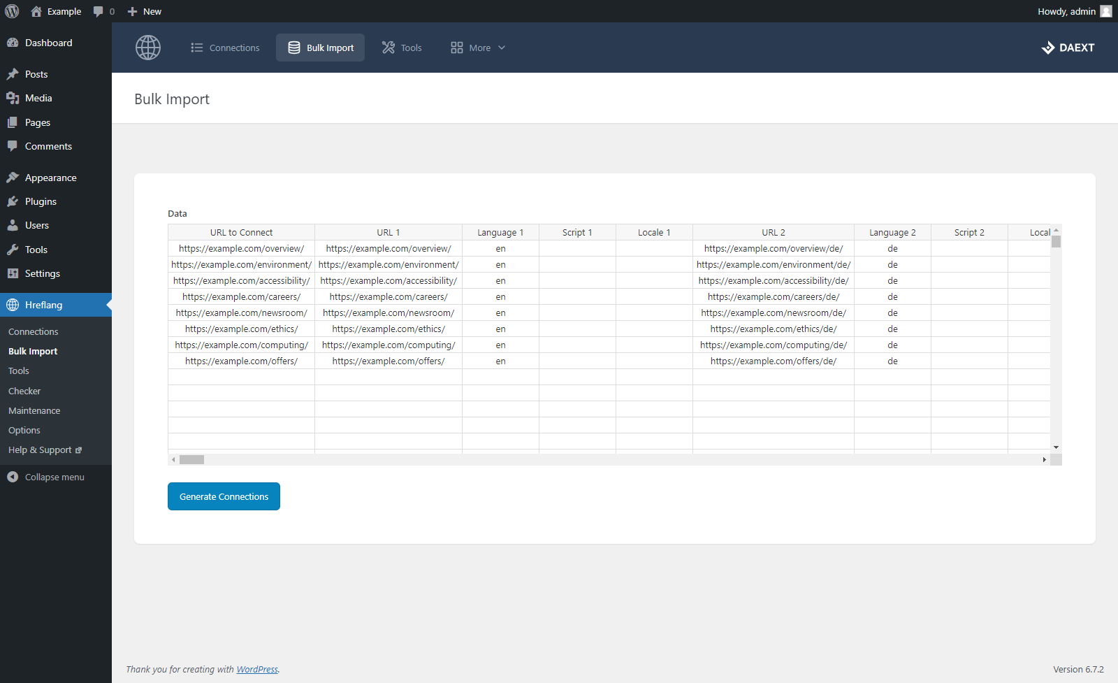 Carica in massa i dati hreflang presenti in un file CSV o esportati da un altro plugin usando il foglio di calcolo integrato nel plugin.