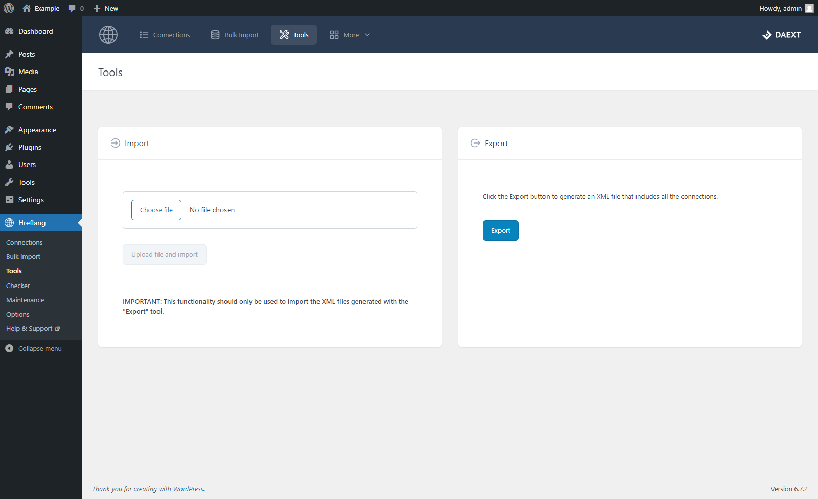 La funzione di importazione ed esportazione di Hreflang Manager consente di archiviare i dati hreflang in file XML. Questo ti permette di effettuare backup dell’implementazione hreflang, spostare i dati tra siti diversi e altro ancora.