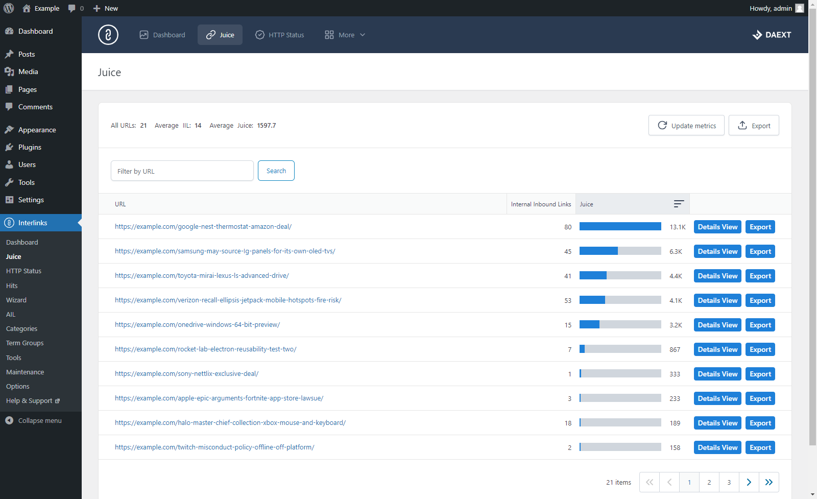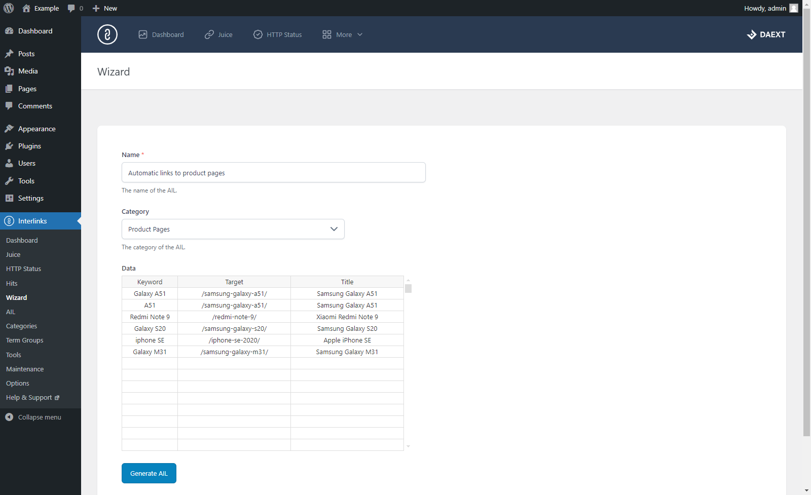 Con Interlinks Manager puoi convertire specifiche parole chiave o frasi in link interni. Usa questa funzione per aumentare le visite alle pagine dei tuoi prodotti, automatizzare il tuo programma di affiliazione, collegare parole chiave che fanno parte di un glossario e altro ancora.