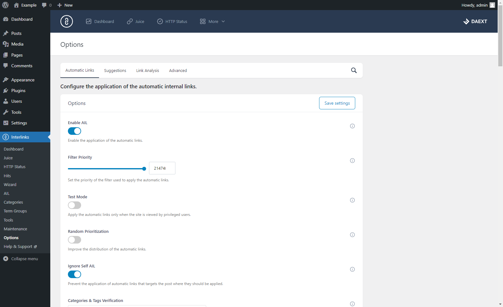 Analizza la struttura dei link interni, accelera il processo di link building con lo strumento di suggerimenti integrato, crea link automatici basati su una lista di parole chiave e molto altro.