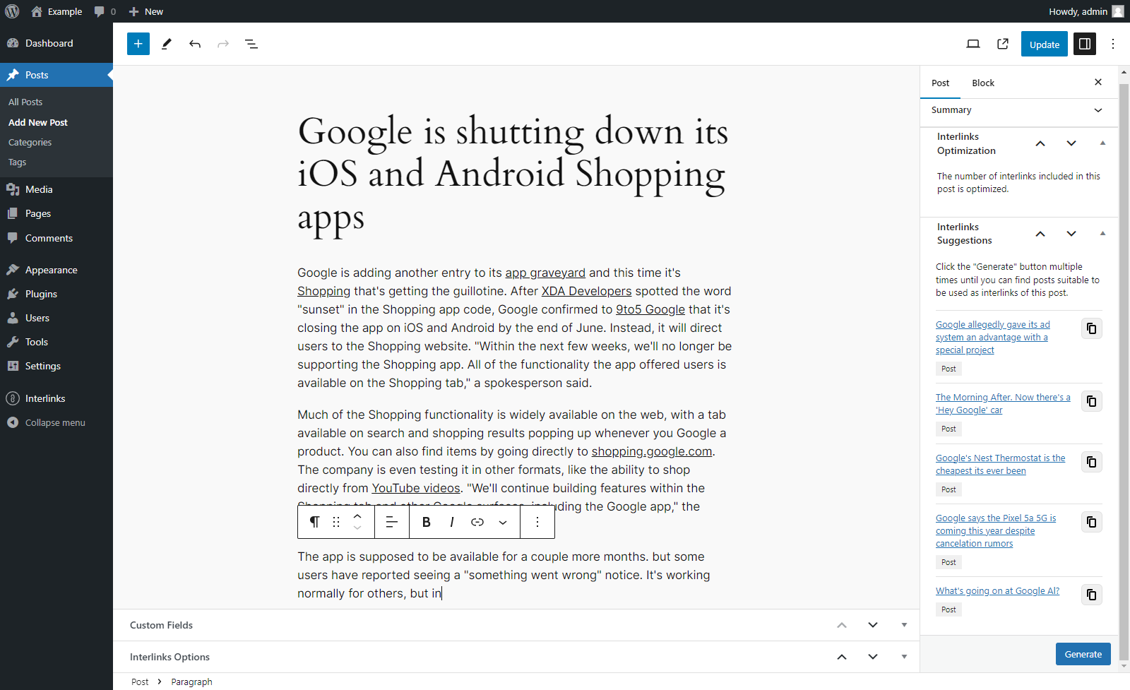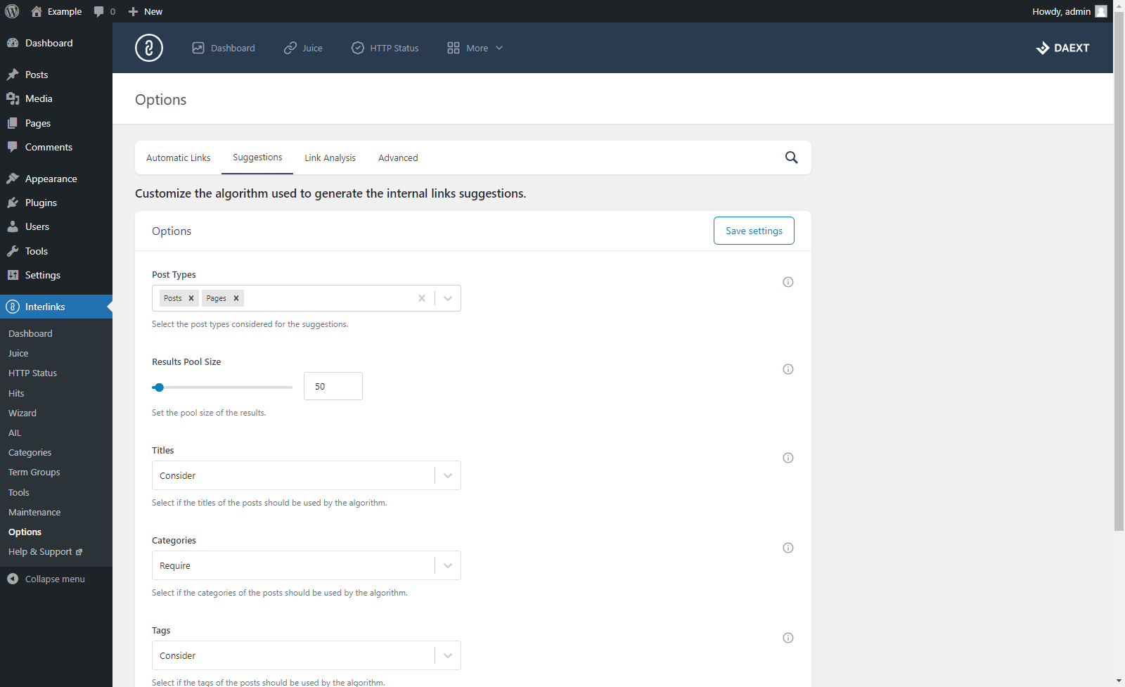 Trova rapidamente articoli correlati al post in fase di modifica grazie al sistema di suggerimenti integrato. I parametri utilizzati da questo algoritmo sono personalizzabili dalle opzioni del plugin.